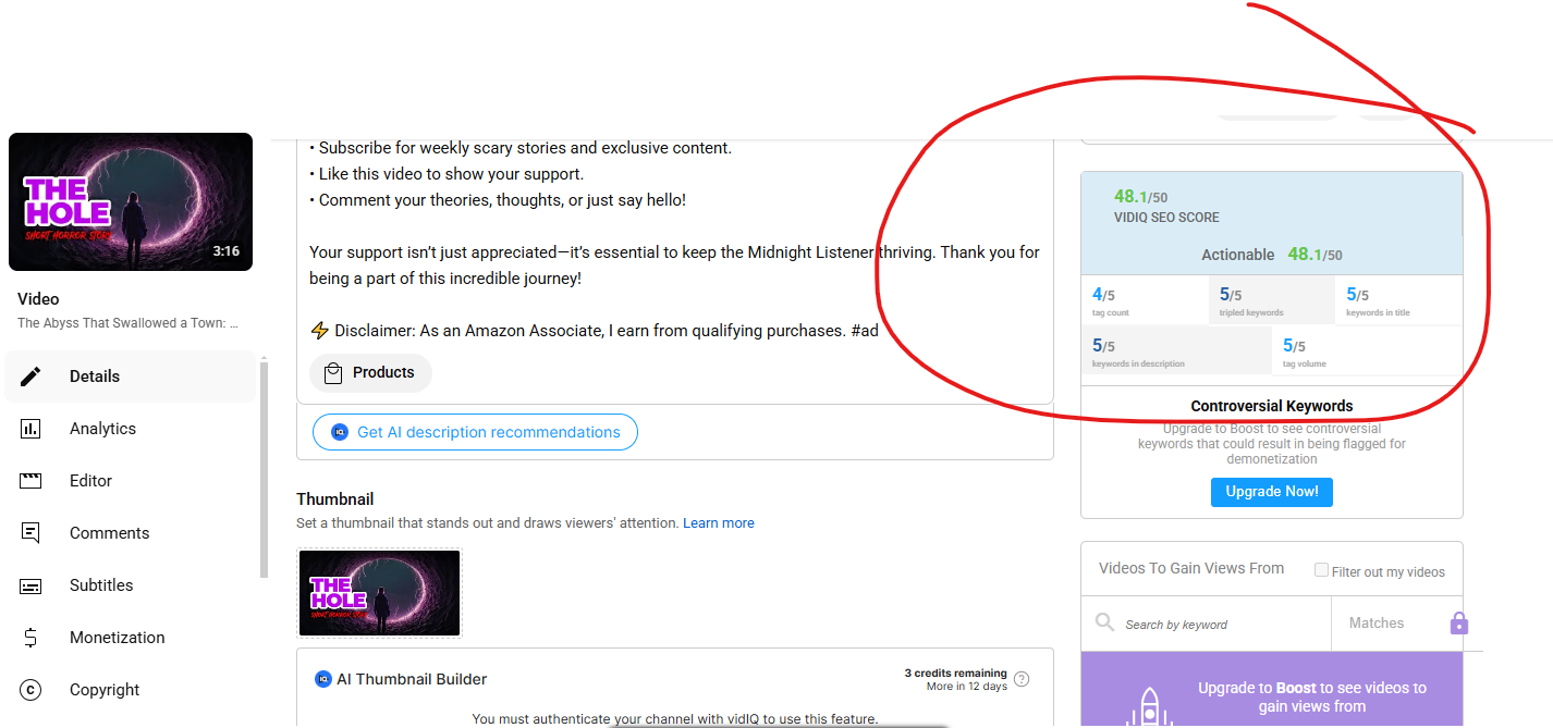 Optimized competitive keywords for a tech channel, achieving #1 search results within 48 hours.